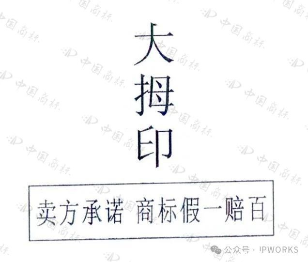 首先,关于诉争商标的含义、呼叫和外观是否可使公众作为指示商品或服务来源的标志进行识别或记忆。诉争商标由上部较大的“大拇印”文字,及下部带框较小的“卖方承诺商标假一赔百”文字构成,字体为普通印刷体。大拇印公司主张因“大拇印”文字本身具有显著性,在此基础上添加“卖方承诺商标假一赔百”文字会增添标志的显著性。一般而言,在获准注册的商标标志周边添附其他装饰或文字并不会有损商标标志的显著性,有时甚至会增加商标标志的显著性。但有些添附恰恰会画蛇添足减损原标志的显著性。就诉争商标而言,“卖方承诺”“商标假一赔百”属于对真实性进行承诺的广告宣传惯常用语,而“大拇印”在这一语境下刚好也具有承诺的含义,两者结合后,反而淡化了“大拇印”单独存在时的显著性。诉争商标整体容易被一般公众识别成一个对真实性进行承诺的惯常广告用语,认为是对商品真实性或其上贴附的其他商标真实性的承诺,而非指示商品或服务来源的标志。因此,诉争商标缺乏显著性。其次,大拇印公司还主张相关公众易将诉争商标下部“卖方承诺商标假一赔百”理解为经营者对上部“大拇印”标志真实性的承诺。但商标自证真伪功能并非认定商标显著性的考虑因素。大拇印公司关于诉争商标因具有自证真伪功能而具有显著性的主张不能成立。最后,大拇印公司未能提供证据证明诉争商标经过使用获得了显著性。